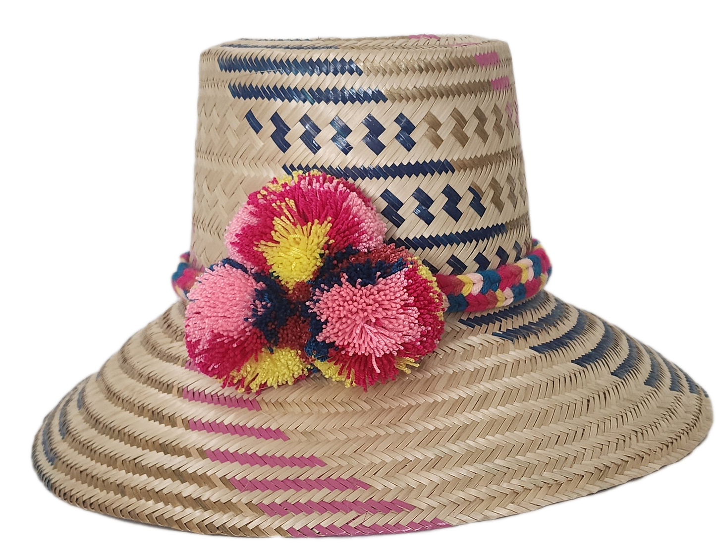 Discover the vibrant, handmade Wayuu Hat, a unique artisan treasure, expertly woven from high-quality Iraca palm fibers by gifted Wayuu artisans across Colombia and Venezuela. Each hat represents about 8 hours of dedicated craftsmanship, transforming natural materials into a unique, colorful piece of wearable art.
