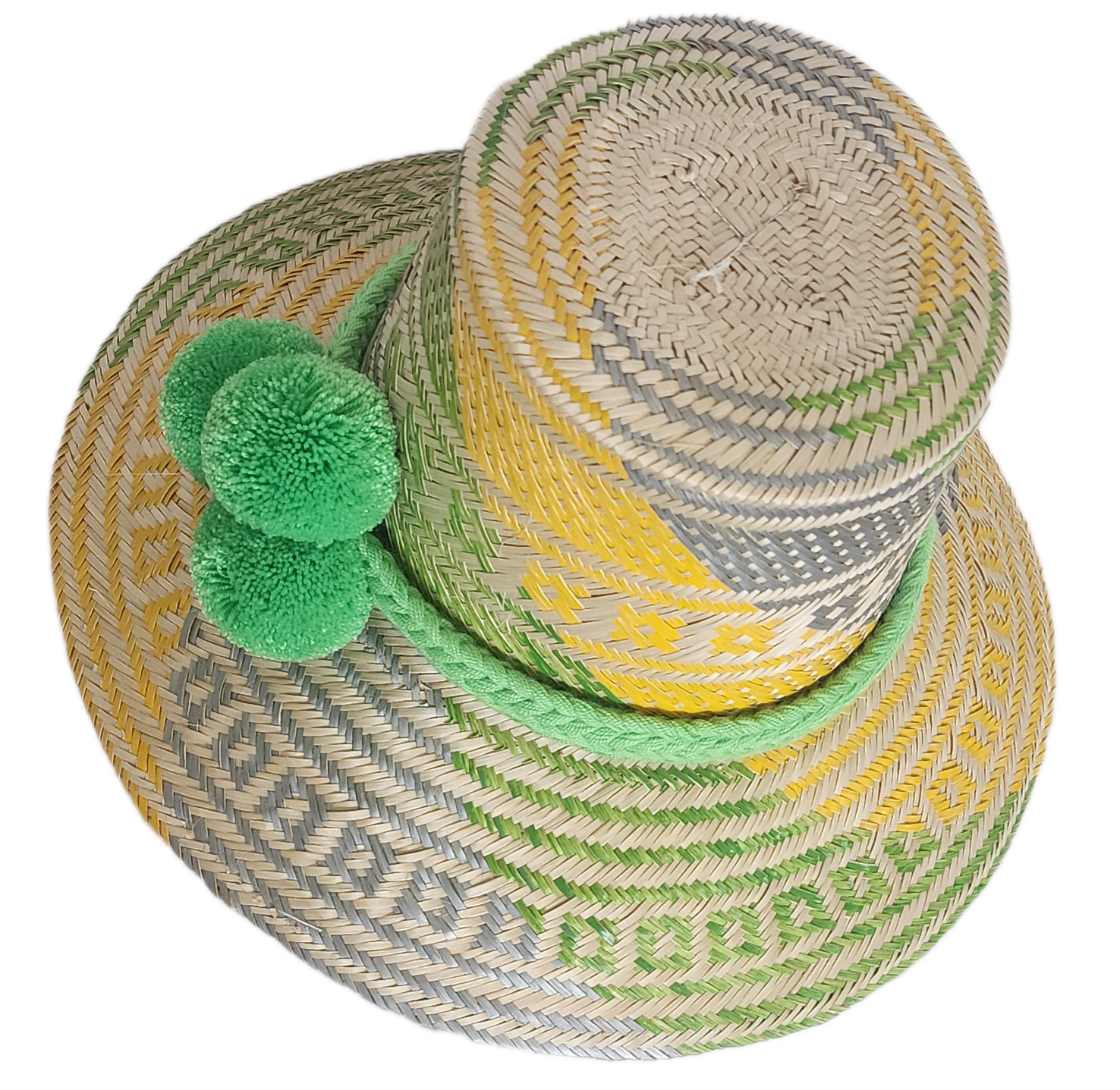 Discover the vibrant, handmade Wayuu Hat, a unique artisan treasure, expertly woven from high-quality Iraca palm fibers by gifted Wayuu artisans across Colombia and Venezuela. Each hat represents about 8 hours of dedicated craftsmanship, transforming natural materials into a unique, colorful piece of wearable art.
